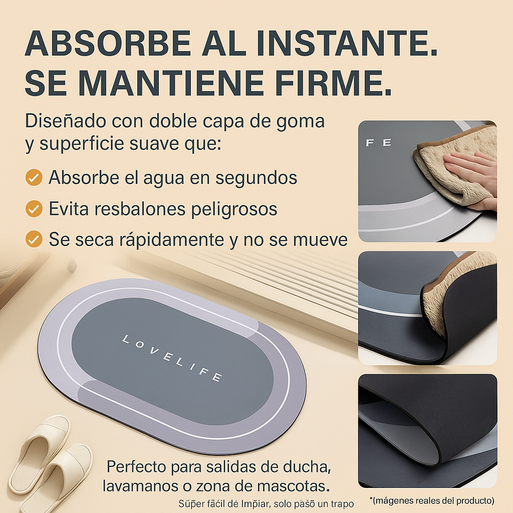 Imagínate saliendo de la ducha y pisando un tapete que seca al instante sin mojar el piso y sin deslizarse